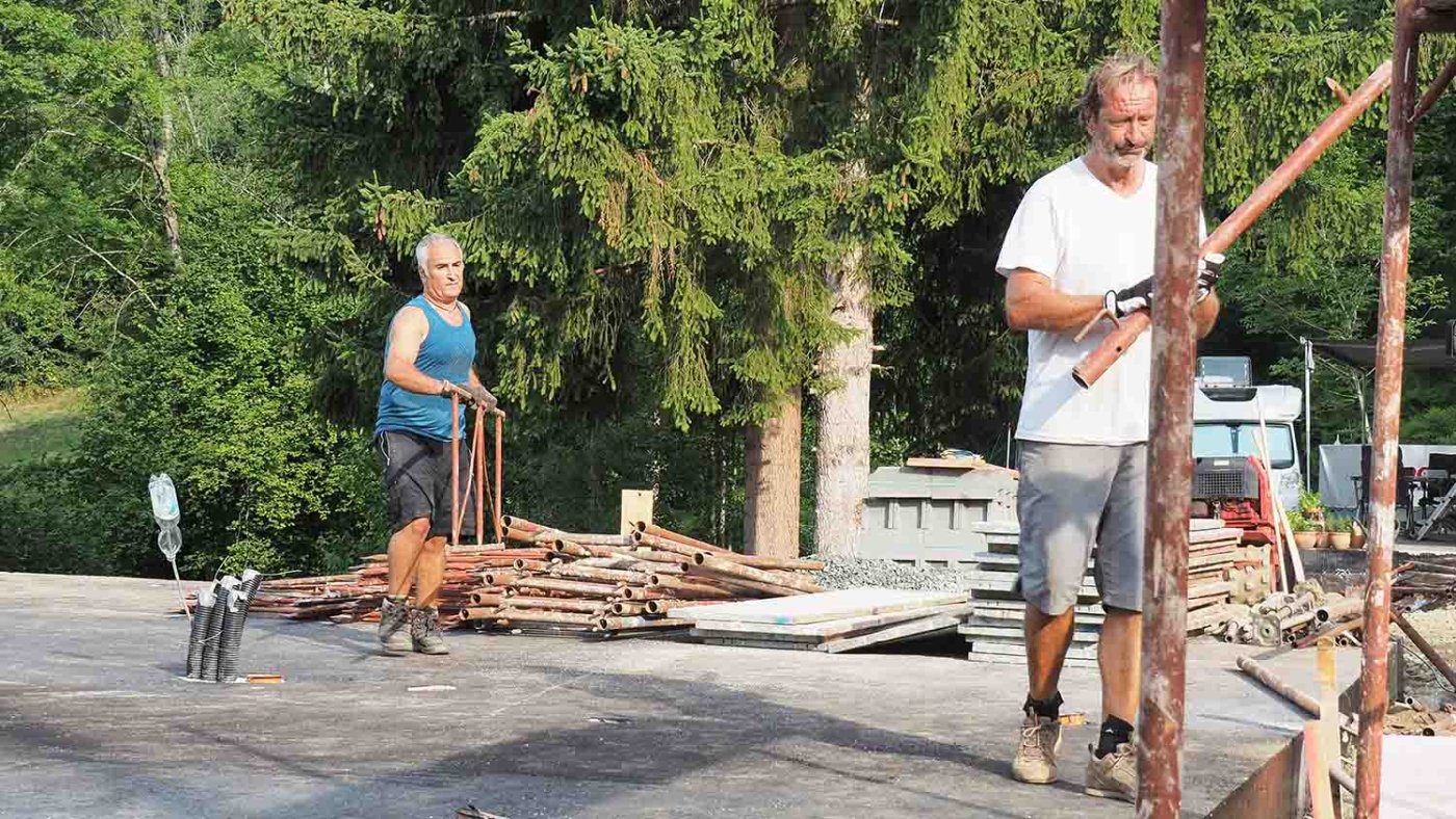 ... bauen Charly und ich an einem Tag fast das ganze Gerüst auf.