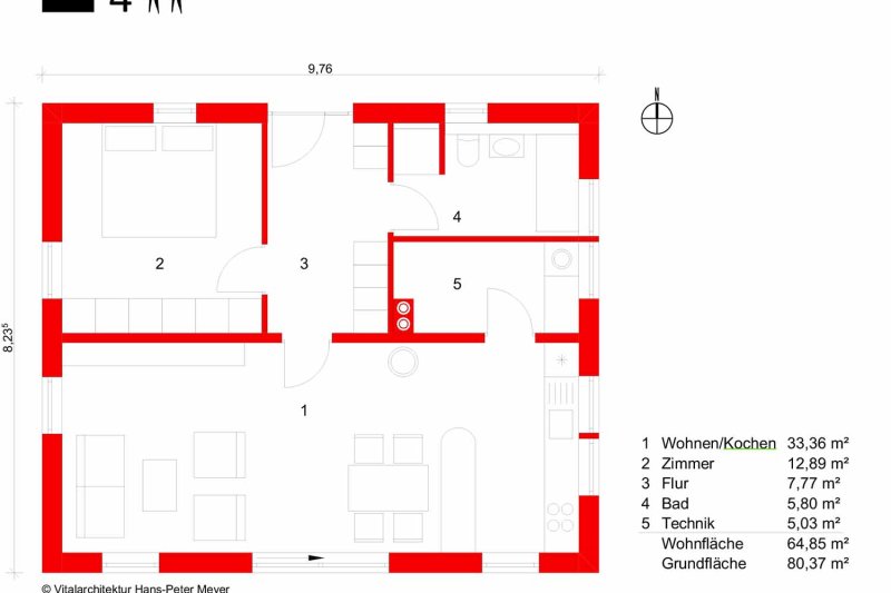 Gebäudefläche: 80,37 m²